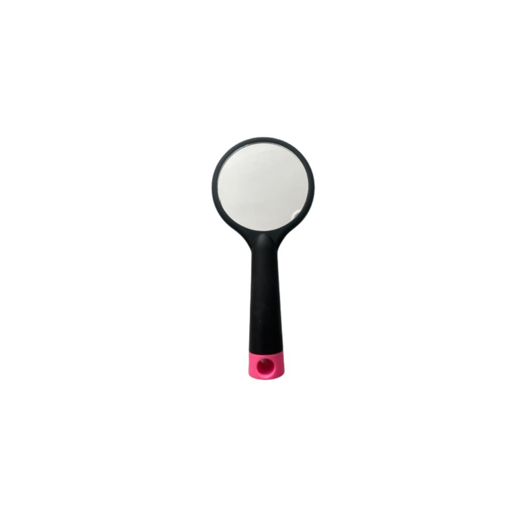 Cerdas de plástico suave y de colores que masajean el cuero cabelludo. Cuenta con espejo en la parte posterior excelente para acompañarte de viaje.